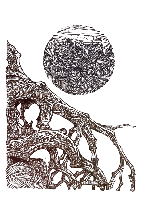 Что-то как будто становится отдельным кем-то, переставая сливаться с тяжестью листвы и шепотом мшистой тьмы, нечто... наблюдает, изучает со стороны, затаилось но заметило Юпитера?