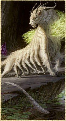 Глаза, как у трех кошек, а тело подобно телу большой многоножки. Светлый мех мерцает зеленым пламенем, хвост стучит точно длинная плеть с рассеченным концом. Когда старая дикая кошка принимает объятия смерти в Некроделле, то может получить некромагическое благословение этой земли и переродиться ускользающей нэкоматой. Умирая повторно, она проклинает своего убийцу.
