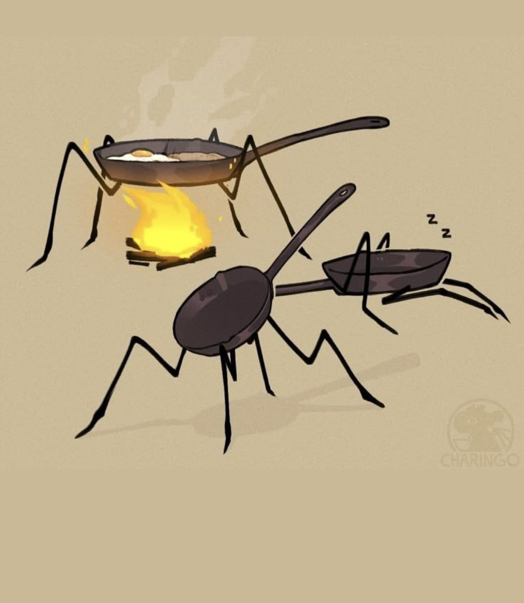 Небольшая чугунная сковородка диаметром около 15 см с ножками. Это - НЕ мимик, а именно голем. Собачонкой бегает за Мелкой. Огнеустойчив. Любит, когда Мелкая использует его в качестве оружия. На нём вполне можно готовить еду.