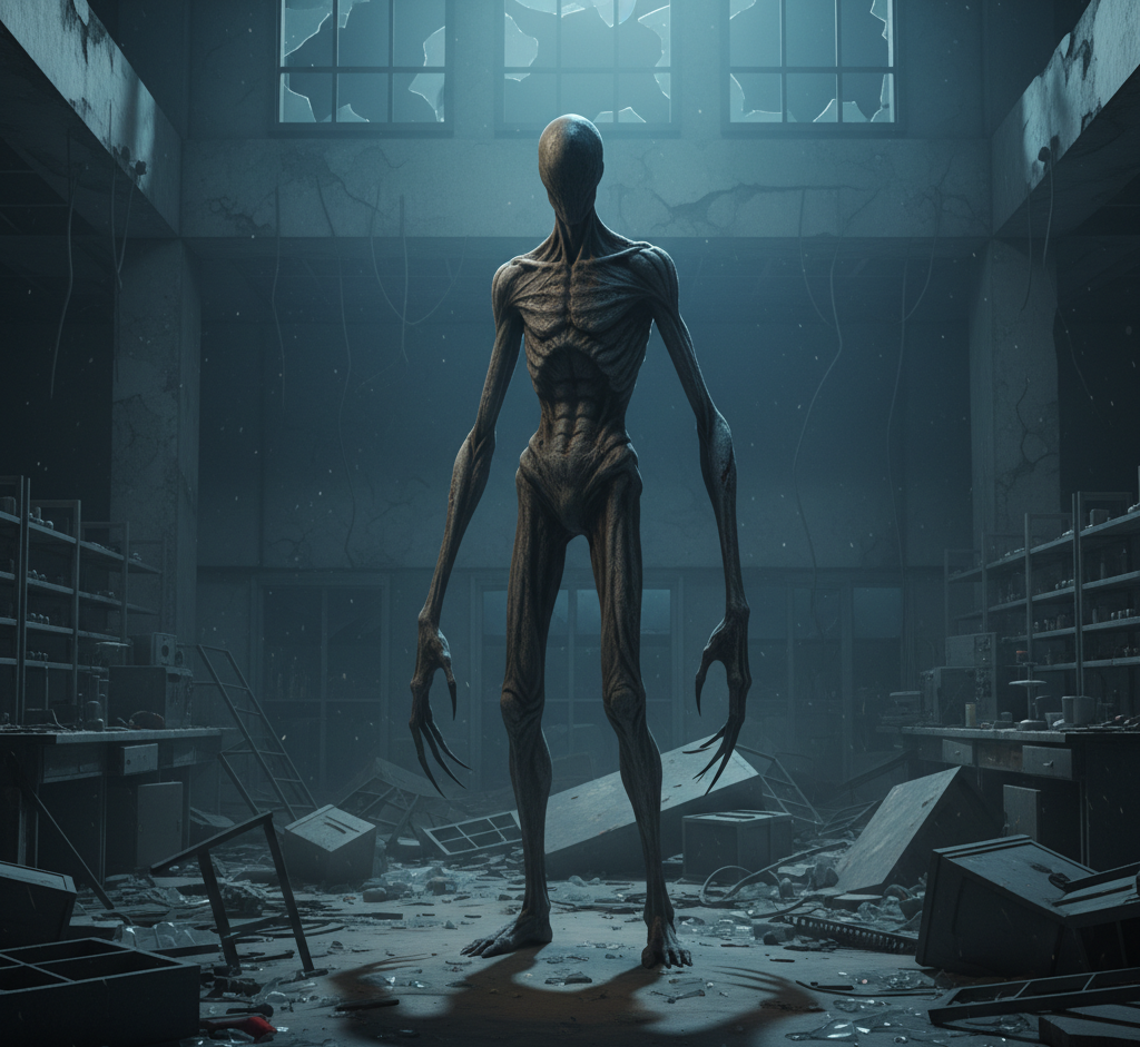 Но тут она снова уловила движение. Тень мелькнула в конце коридора, за поворотом. Не расплывчатое пятно, а чёткий силуэт — высокий, сгорбленный, с длинными конечностями. Он замер на мгновение, будто почувствовал её взгляд, а затем скользнул за угол.