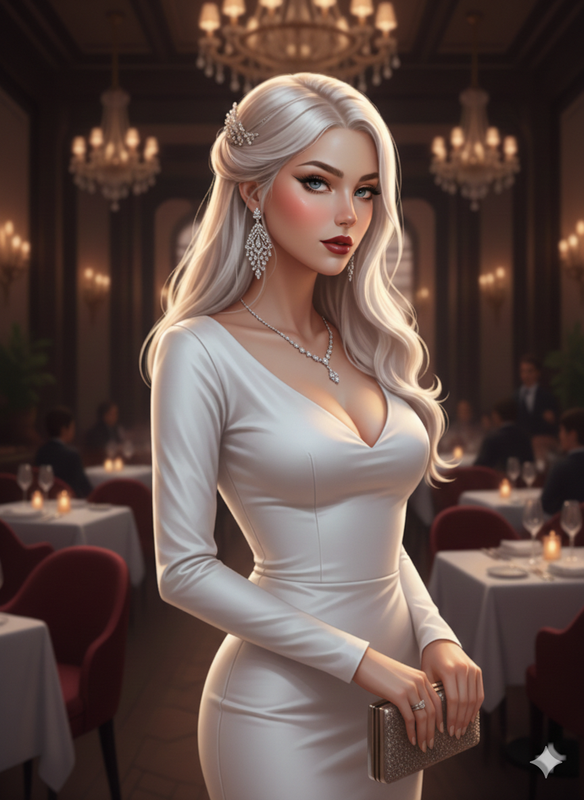 Она осталась одна за столиком, окружённая мягким светом свечей и приглушённым гулом ресторана. В бокале медленно танцевали пузырьки вина, а за окном город продолжал жить своей ночной жизнью — огни скользили по мокрому асфальту, отражались в стёклах высоток, превращая пейзаж в мерцающую мозаику.