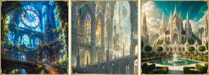 Однако на Парящих Островах центральные дворцы возведены из белого камня, чаще всего полученного магическим путём. Городские здания выглядят проще, но их архитектура и этажность часто подчинены размерам территории для строительства, из-за близкого соседства природных объектов, порой весьма ограничивающих застройку.
